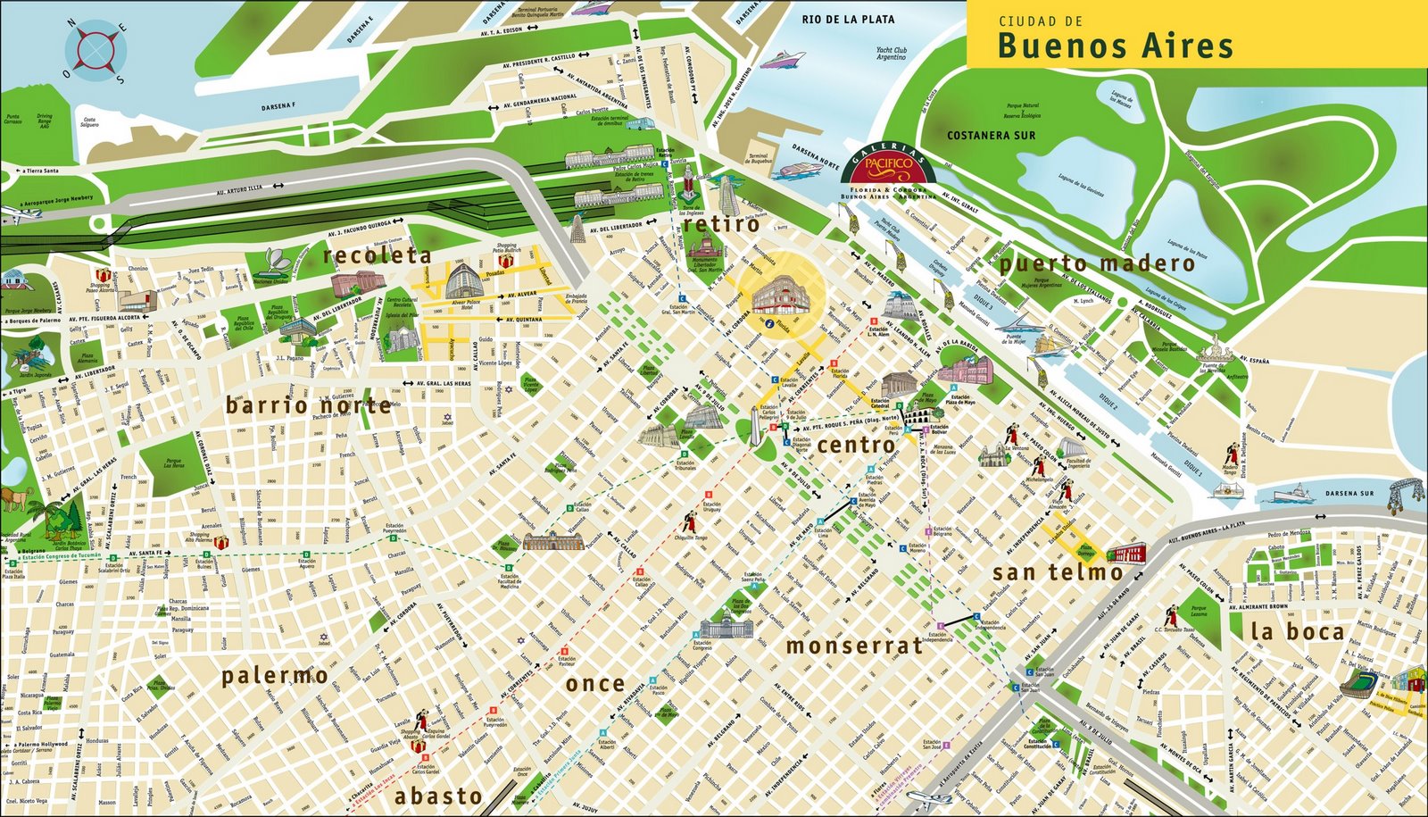 Nosotros optamos por visitar la ciudad «por barrios», y empezamos nada más llegar por Microcentro, lugar donde encontramos un albergue barato que reservamos desde España para nuestras primeras noches. Se trata del Hostel Ritz, acogido en la red Hostelling y que si pensáis que no es céntrico, nada más decir que está en una esquina de 9 de Julio con Avda de Mayo. Desde aquí un agradable paseo nos llevó por Avda de Mayo hasta la catedral y la Plaza de Mayo donde también se encuentra la Casa Rosada, que alberga las oficinas de la presidencia. Los elegantes edificios del trayecto adornan todo el recorrido. Detrás de la Casa Rosada se encuentra la Plaza Colón y desde aquí se puede acceder a Puerto Madero, antigua zona portuaria trasformada en lujosos apartamentos y sofisticados restaurantes y por lo tanto en una de las zonas más caras de la ciudad. La Fragata Sarmiento o el puente de las mujeres son algunos de sus atractivos. Desde aquí en un taxi a Recoleta, visitando en primer lugar la maravillosa librería del Ateneo. Y ya siguiendo con nuestro paseo, el Cementerio de Recoleta, donde yacen los restos de algunos de los más insignes personajes de la historia argentina.