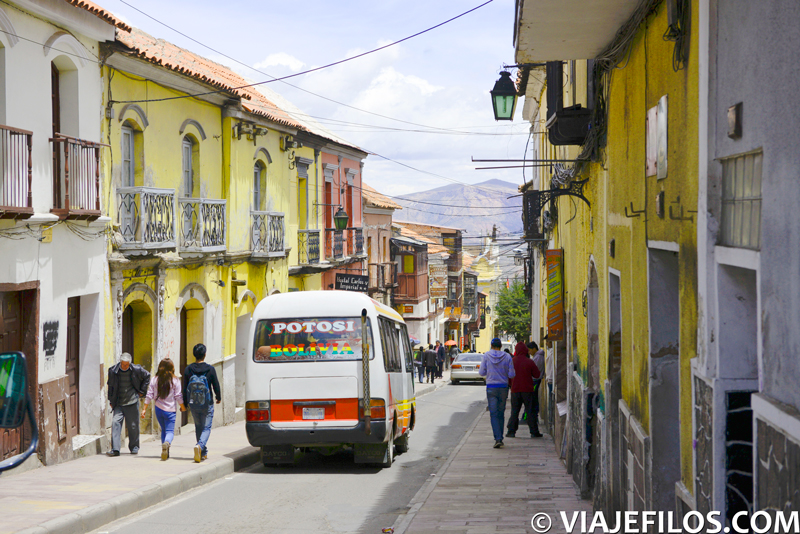 A partir de aquí, cruzamos por el interior del Mercado Central, saliendo a la calle Bolívar, a espaldas de la Casa de la Moneda. Desde ahí, callejeamos por los alrededores de la Plaza 10 de Noviembre. Cualquiera de las calles aledañas sorprende por sus casas. Nos quedaban los dos platos fuertes de Potosí: la visita de la Casa de la Moneda, que no intentamos, pues habíamos leído que cerraba los lunes; y la visita de alguna de las minas de Cerro Rico, que dejaríamos para mañana.