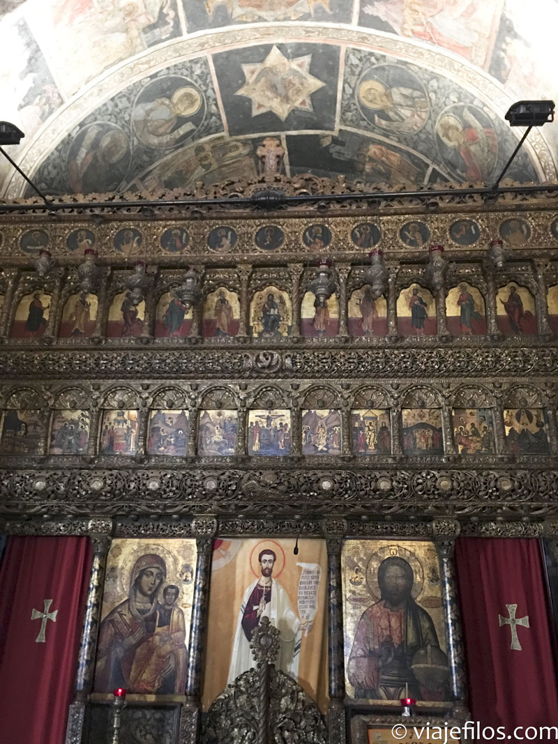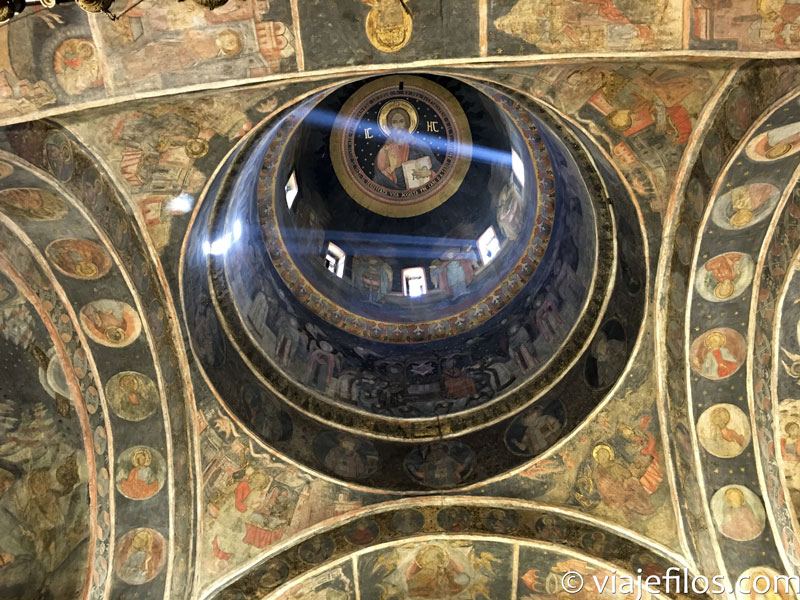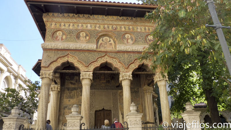 Nuestra siguiente parada fue otra Iglesia, la Iglesia o Monasterio de Stavropoleos, del siglo XVIII y estilo brâncovenesc, aunque la actual es una reconstrucción, ya que la antigua sucumbió a uno de los grandes terremotos que ha sufrido esta ciudad. A pesar de su pequeño tamaño su interior no deja indiferente. Hacia el mediodía, hora a la que la visitamos, la luz al entrar por las ventanas del templo, dibuja formas y líneas que a uno lo dejan ensimismado. Al lado hay un antiguo convento con un patio por el que se puede dar un pequeño paseo. La visita lleva muy poco tiempo pero es altamente recomendable.