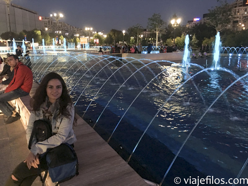 Tras unas dos horas decidimos volver a la zona de la Plaza Unirii para intentar ver el espectáculo de luz y agua de las fuentes, no sin antes encontrarnos con un Charles de Gaulle gigante al que saludamos gustosamente.