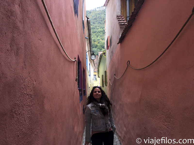 Posteriormente cruzamos por el Pasaje de San Jorge, un paso subterráneo y que nos lleva al casco antiguo. En este pasaje podemos ver grabados que hacen referencia a la época romana, y al final del mismo encontramos un mapa de la antigua Dacia (provincia romana que englobaba a Rumanía) y otro enfrente del Imperio Romano. A la salida hay una pequeña plaza, llamada Plaza Roma, con una escultura de Rómulo y Remo con la loba.