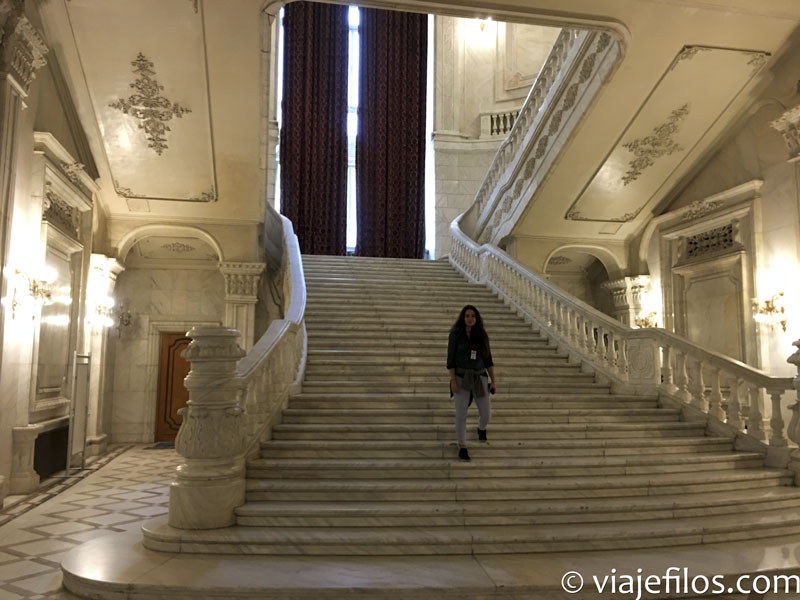 La visita consta de un paseo por varias salas, escaleras y salones, la guía que nos tocó era una funcionaria del gobierno rumano, y la verdad es que tanto su español como su capacidad explicativa fueron muy notables. El palacio es tan inmensamente grande, que en las dos horas y media de visita, apenas se recorre un 5%. Esta excursión, aunque nos gustó, sí que creemos que no es imprescindible con un viaje con el tiempo ajustado, aunque una visita para ver al menos el exterior es obligada.
