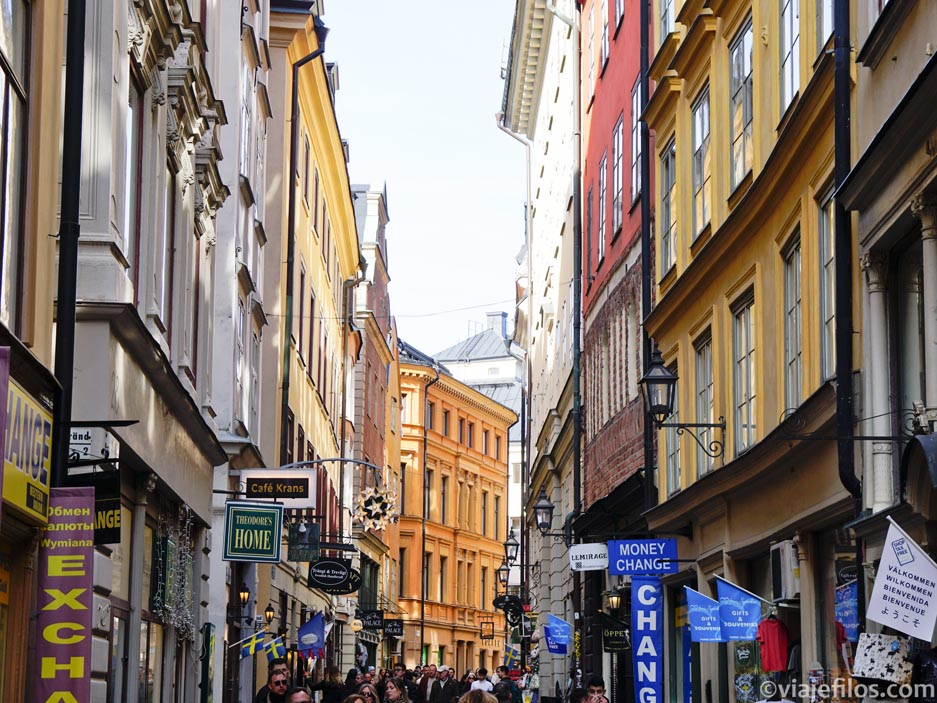 En sus laberínticas calles se encuentra el estrecho callejón más angosto de Estocolmo, llamado «Mårten Trotzigs gränd«, que mide apenas 90 cm de ancho en su punto más estrecho. Perderse por cualquiera de estas calles empedradas merece la pena.