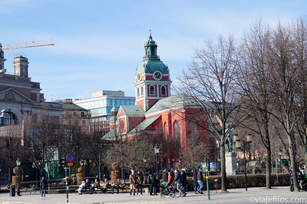 En Slottsbacken, la colina más elevada de Gamla Stan, aparece la fachada más interesante del Palacio Real, la que da acceso al Tesoro, al salón del Estado y a la iglesia Palatina. Al frente la Catedral, Storkyrkan, de 700 años de antigüedad, la más antigua del país. Habrá que entrar al interior y disfrutar de muchas de las obras de arte que atesora. Entre las más destacadas: la escultura de San Jorge y el Dragón de 1489.