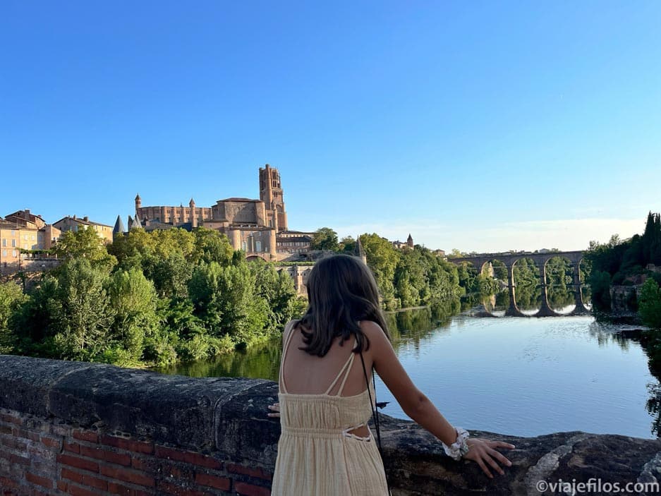 Visitamos el claustro o Collégiale Saint-Salvy, la catedral por fuera (estaba cerrada) y bajamos por la ribera del río Tarn hasta el puente Vieux donde hicimos mil fotos a la ciudad y al atardecer.