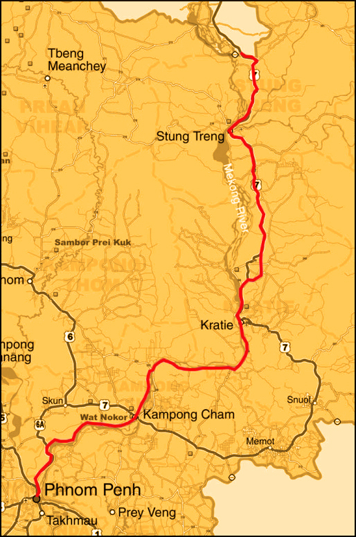 El trayecto desde Phnom Penh hasta la frontera con Laos llevaba unas 12 horas. Solo existe una compañía que haga el recorrido o eso creemos, Sorya (la 168) con multitud de oficinas en todo el país y un coste de 27 dólares. Así que tras recorrer el Sur de Camboya, Sihanouk ville y Kampot, volvimos hacia la capital donde pasar una noche previa. Para dormir elegimos al azar un hotel cercano a la estación de buses de Sorya desde donde salía el nuestro al día siguiente. La estación está junto al Central Market, el Hotel Nana por 20 dólares, la habitación impecable.