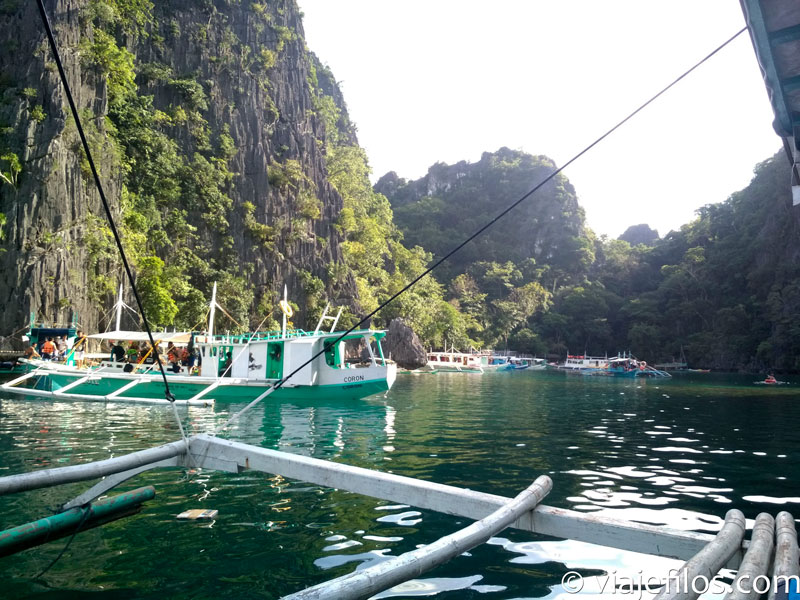 Nuestro primer día completo tras la llegada lo dedicamos al tour en los famosos bangka, el barco tradicional de las Filipinas, que incluía todos los lugares que se describen en cualquier web, desde la cercana zona de Siete Pecados (con un buceo muy bonito) pasando por impresionantes paisajes: Kayangan Lake, Twin Lagoon, Barracuda (o Luluyuan) Lake con aguas calientes y un camino de acceso espectacular, Skeleton Wreck, Coral Reef Garden, Blue Lagoon, Green Lagoon… es difícil seleccionar fotografías porque absolutamente todos los paisajes no tenían desperdicio sobretodo en un día soleado como fue nuestro caso que aumentaba el color azul turquesa del agua. Imprescindibles unos buenos escarpines o sandalias porque tendréis que andar por zonas de coral y los erizos de puntas muy largas son numerosos. Tras una jornada en remojo, buena comida y buena compañía, regreso al hotel y salida nocturna para recuperar fuerzas y comentar la jornada.