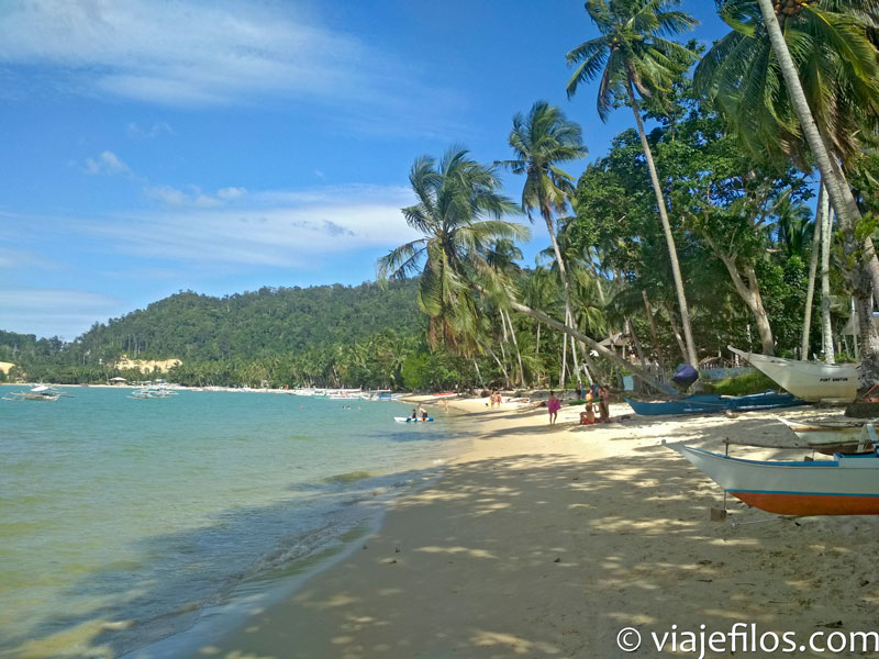 Port Barton es una mínima aldea con calles de tierra que aparece tras abandonar una frondosa vegetación, situada a la orilla de una playa preciosa donde se concentran la mayor parte de alojamientos y lugares para comer. Aunque no hicimos ningún paseo en barco por no disponer de tiempo, existe amplia oferta como en El Nido de excursiones por la zona. Nuestra estancia fue testimonial y nos dio para comer a la orilla de la playa en el alojamiento que elegimos (Ausan Beach Front Cottages, barato, con buen aspecto exterior al ser cabañas a la orilla de la playa pero con habitaciones poco estimulantes para el reposo sin climatización, al menos las que nos tocaron y con ventiladores que llevaban recuerdos de la guerra de Filipinas en forma de pelusas) un paseo por la playa con un agradable masaje al atardecer a pié de playa y posteriormente tras la ducha, cena en uno de los varios sitios que se asoman a la arena. Sitio muy tranquilo, con ambiente nocturno rollo Jamaica, chill-out, antorchas de fuego y canuteo variopinto.