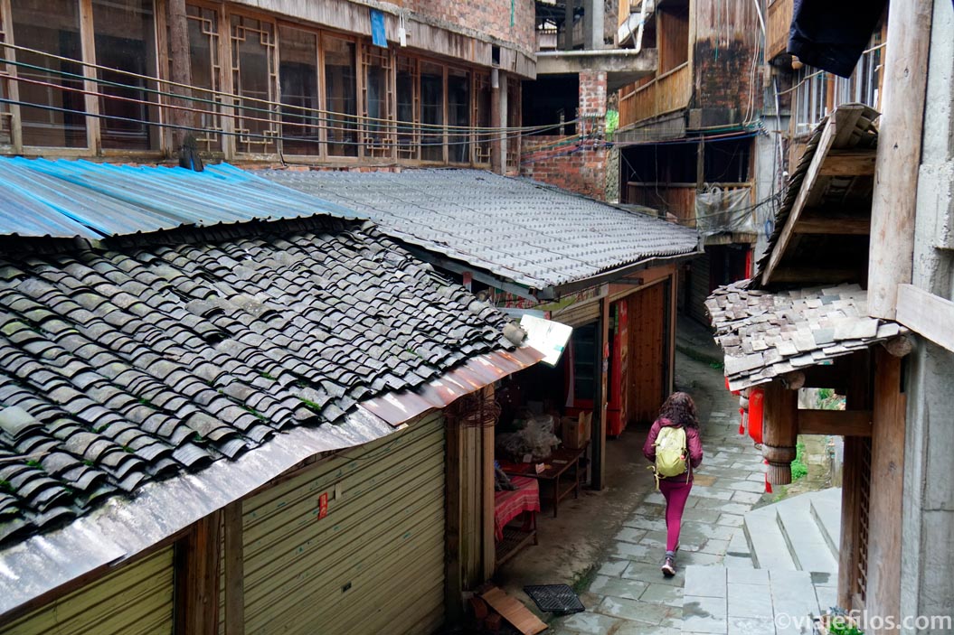 Deshacemos un pequeño trozo del camino y decidimos bajar hasta Ping’an. No son más de diez minutos llegar al pueblo. El pueblo parece abandonado. Hay hoteles tiendas, pero casi todos los reconocimientos están cerrados.