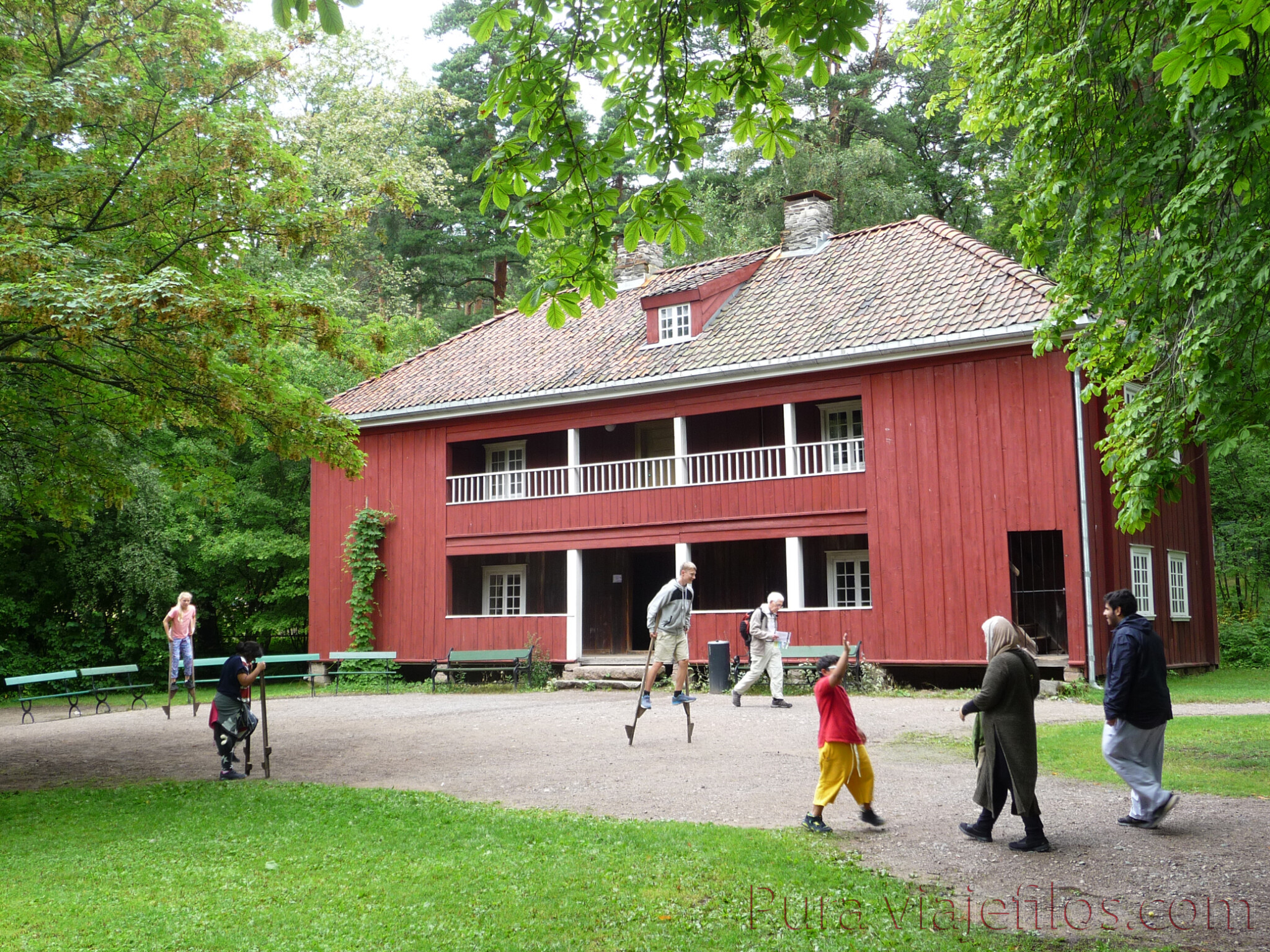 El día amanece gris y frío, una bendición. En Murcia están con la quinta ola de calor. Ya en la calle fuimos hasta el Ayuntamiento, allí nos subimos al ferry que no llevó a Bygdoy. Muy agradable navegar por el fiordo. Nos bajamos en Dronngen. Aquí visitamos el Norsk Folkemuseum. Es un conjunto de casas típicas noruegas y el recorrido es muy relajante, ya que están en mitad de un bosque. Puedes entrar en las casas, percibir el olor a madera y la calidez del entorno.