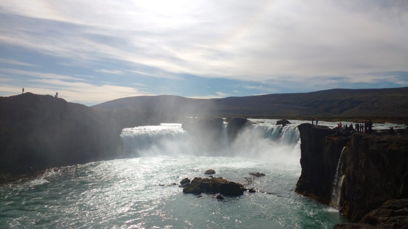 De camino, al pasar la carretera 844 y el río, giramos a la izquierda para llegar a una de las cascadas más famosas, Godafoss, sin duda la que a mí más me gustó.