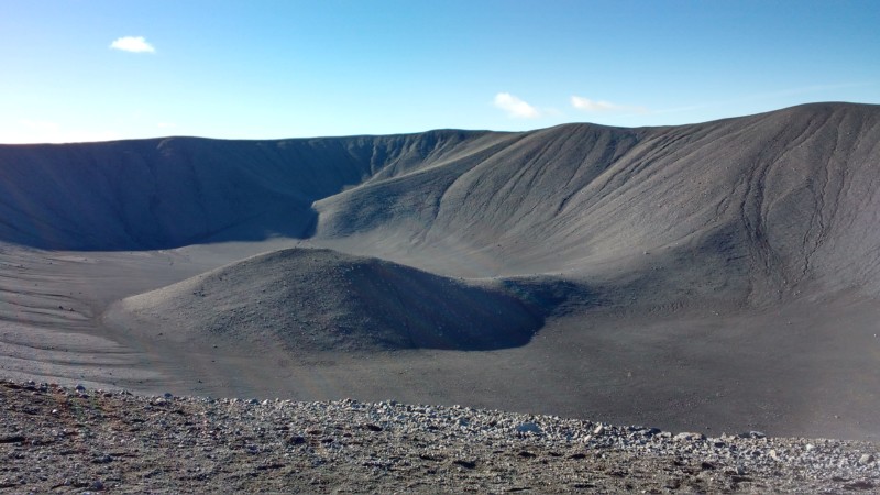 El día comenzaba con un pequeño pero doloroso trekking, subir al volcán Hverfjall, situado en el lago. Desde abajo no parece gran cosa, pero tras una dura subida, comprendes que merece la pena. Además de que el cráter es impresionante, puedes disfrutar de unas vistas espectaculares del lago. Pero sin duda las mejores vistas nos esperaban tras el segundo trekking de la mañana, la subida Vindbelgjarfjall, una pequeña montaña junto al lago, no tiene pérdida porque es la única. El recorrido son unos 5 km ida y vuelta, la mayoría es pendiente pero no tiene mucha dificultad. Desde la cima se puede disfrutar de las mejores vistas de la zona, de hecho, nosotros no visitamos los pseudocráteres, preferimos verlos desde lo alto. Muy recomendable, no os podéis perder este trekking.