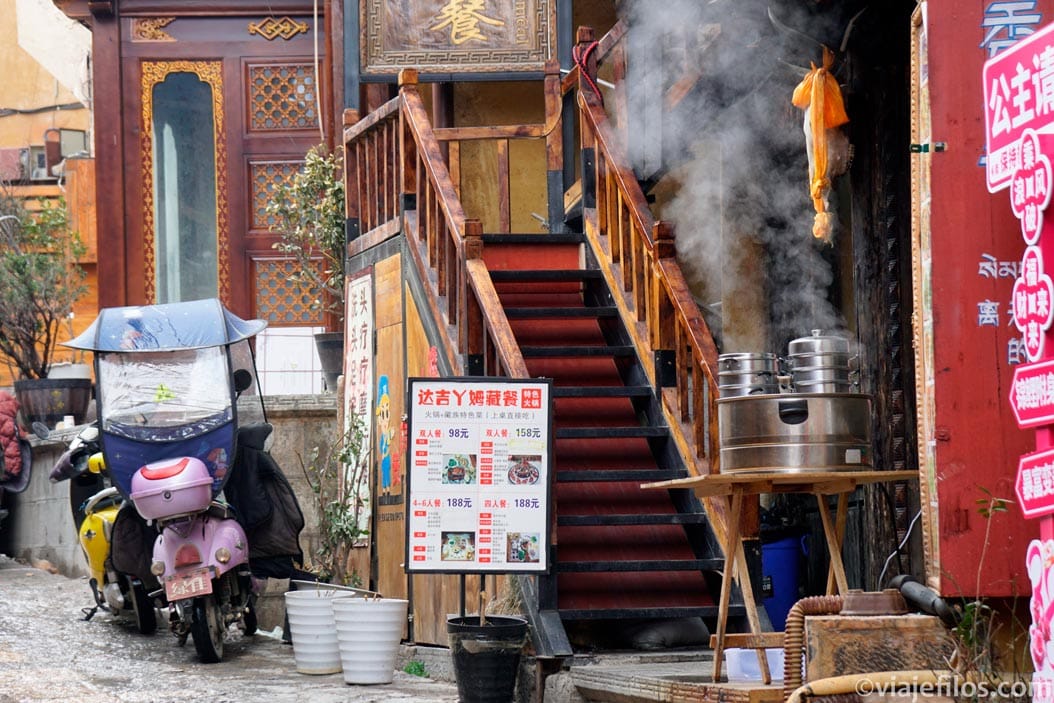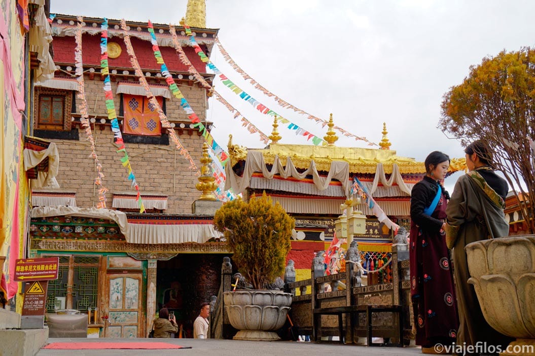 Nos poníamos en marcha temprano. Es lo que tiene irse pronto a la cama, no vayáis a pensar que las celebraciones aquí se pueden alargar mucho. Dukezong, la antigua ciudad de Zhongdian, cuenta con más de 1300 años de antigüedad y con pasear por sus calles empedradas y disfrutar de las tallas en las fachadas de sus casas de madera puede ser suficiente. Eso junto el ambiente da para pasar el día. Pero por supuesto que tiene algún rinconcito que visitar. ¿Queréis saber qué visitar en Dukezong, Shangri-la?