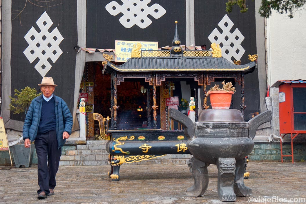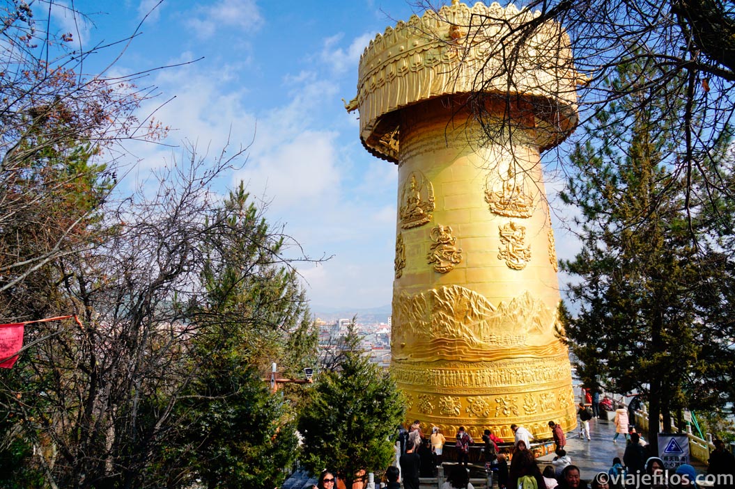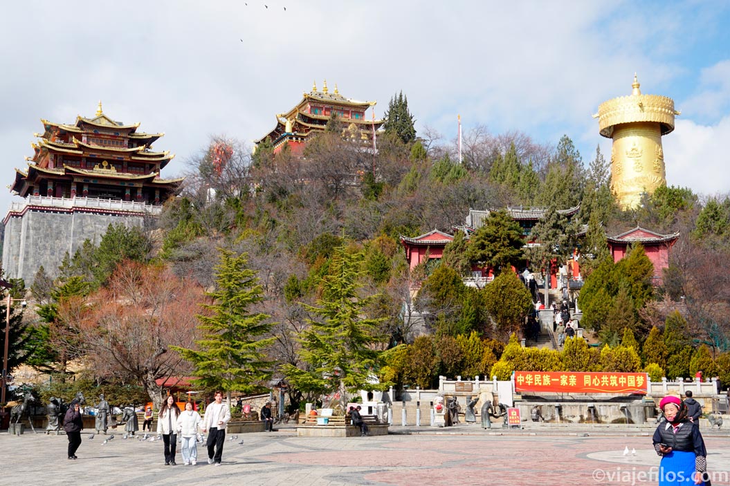Primero y después de encontrar un buen café (Thasheng Coffee and Oil Painting) visitamos el Templo Guishan (Turtle Hill Temple) que si bien es de reciente construcción, goza de una ubicación privilegiada y con las mejores vistas de Shangri-La. Hay tornos de entrada, pero no había nadie ni vimos ninguna taquilla así que entramos directamente. En el interior, que no hay que perderse, una estatua réplica del Shakyamuni del templo Jokhang de Lhasa.