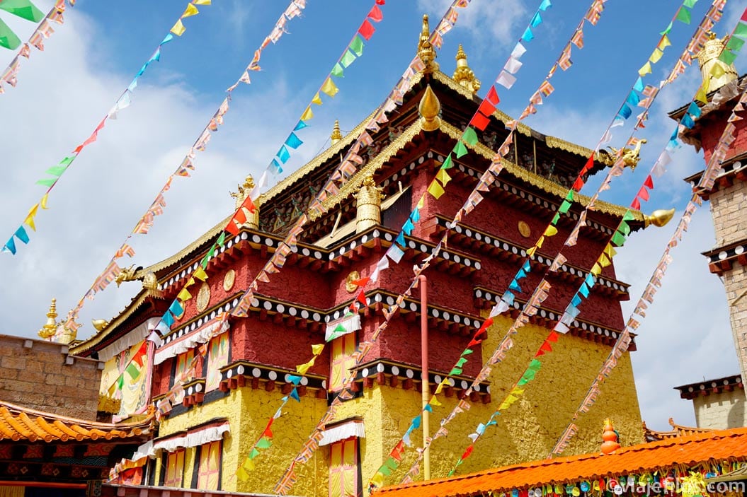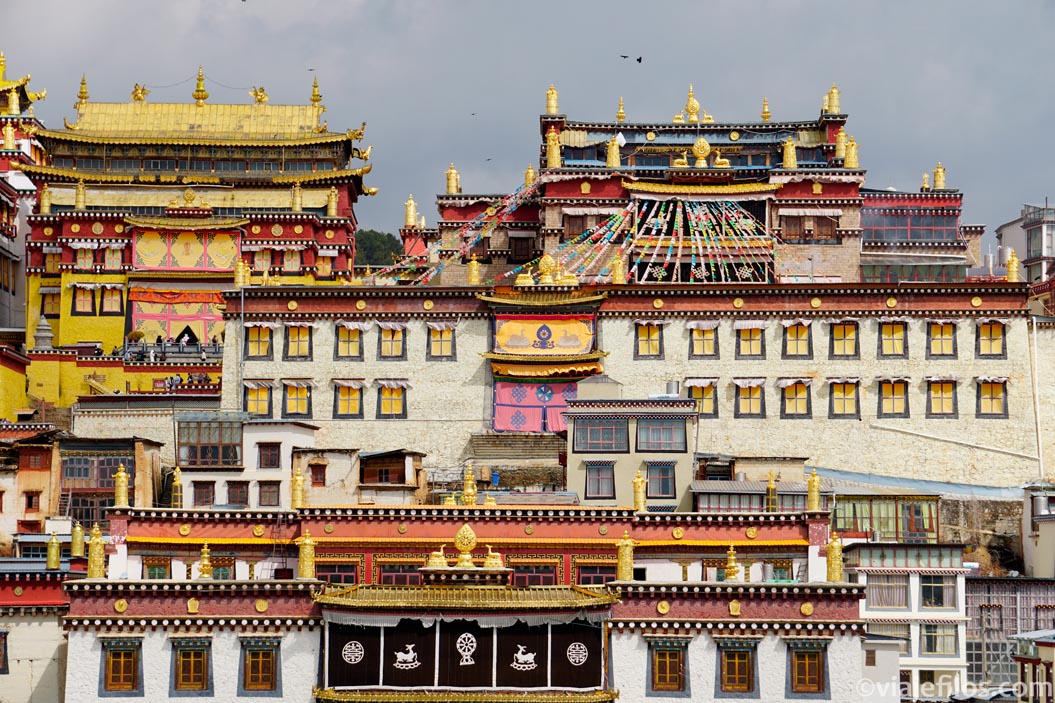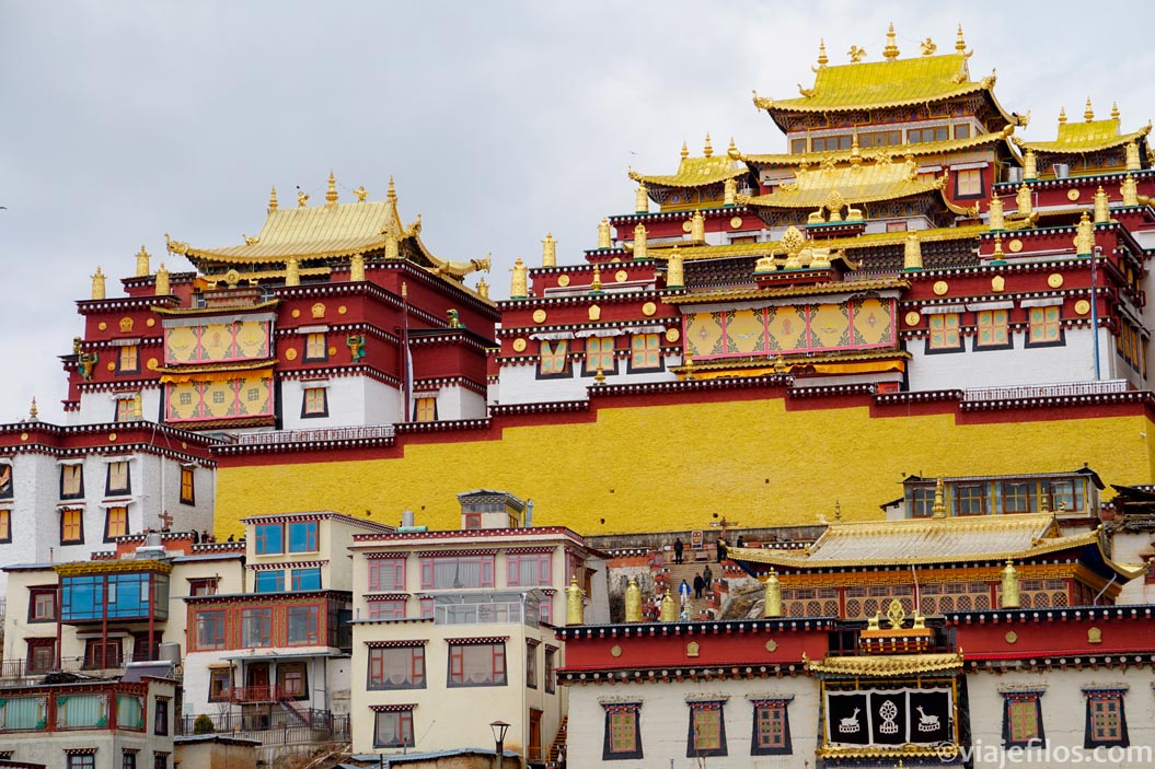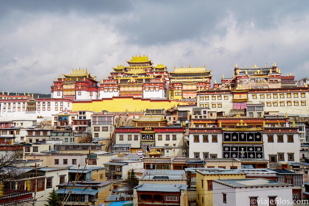 Gandan Sumtseling es el monasterio budista tibetano más grande del suroeste de China. Fue fundado en 1679 por el Quinto Dalai Lama, y hoy es el hogar de más de 700 monjes. Fue destruido durante la llamada revolución cultural comunista y se ha reconstruido posteriormente. Se levanta majestuoso sobre una colina frente al lago en el que leemos se refleja al amanecer. Realmente recuerda al Palacio Potala de Lhasa, en el Tíbet, por su arquitectura.