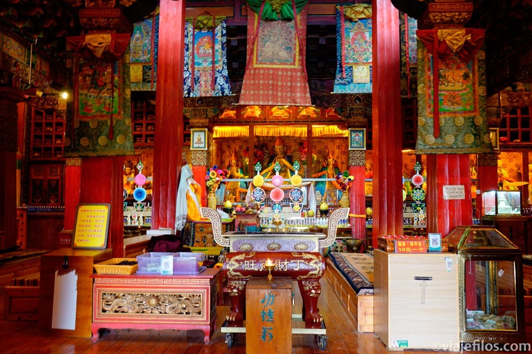 El olor a mantequilla de yak, las tenues luces de las peligrosas velas encendidas, las coloridas telas y murales que cubren vigas, columnas y paredes junto a las imponentes figuras de Budha en sus diferentes estados… imposible describirlo. Además estos lugares de oración son los únicos lugares donde los turistas chinos muestran cierto respeto y guardan silencio.