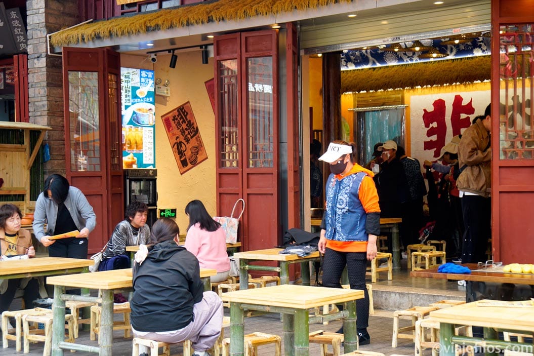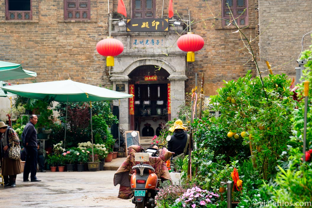 No madrugamos pero tampoco salimos demasiado tarde. Las ganas de probar esa mañana el famoso café de Yunnan podían con nosotros. Yunnan es la principal provincia productora de café en China. Al poco de salir del hotel encontramos una zona de calles peatonales con sus comercios desperezándose de la noche pasada. Buscad Jing Xing St. Por supuesto, buenas cafeterías. En este punto del viaje decir que llevábamos más gastado, mucho más, en café que en comidas. El café nos gusta en exceso y calcular entre 3 y 5 euros por tomar un buen café expreso en cualquiera de las ciudades chinas. Aquel primero que tomamos en Kunming era inmejorable.