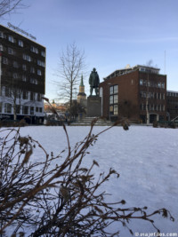 Justo detrás de la catedral protestante hay una pequeña placeta con la estatua de Roald Amundsen (explorador noruego de las regiones polares que dirigió la expedición a la Antártida que por primera vez alcanzó el Polo Sur), vestido con ropas adecuadas para una expedición polar, parece mirar con nostalgia el fiordo y las montañas…
