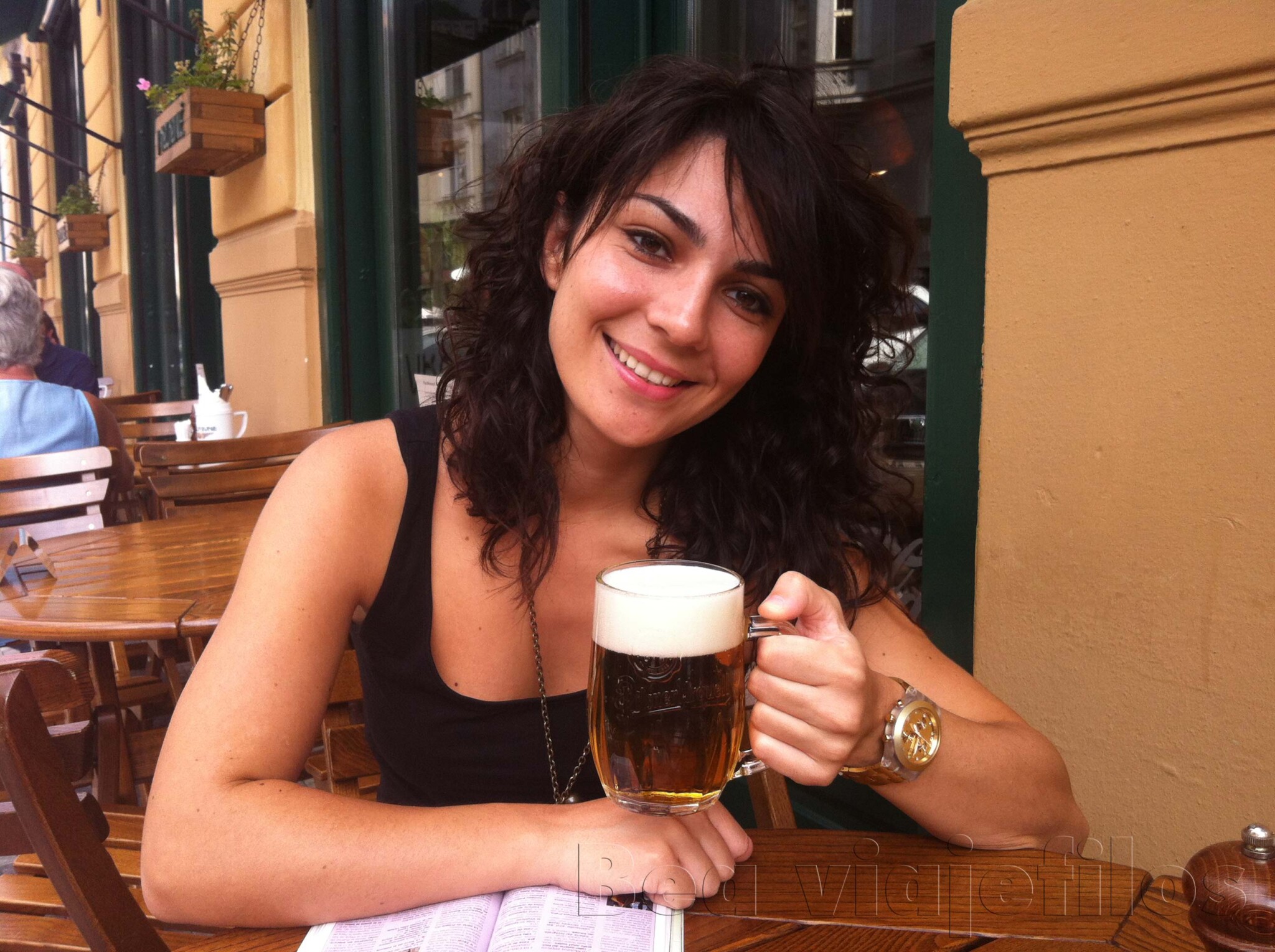 Frente a la Sinagoga Española una Pilsner Urquell, considerada la primera cerveza rubia del mundo.