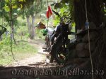 La media en carretera aquí es bajísima para cualquier medio de transporte. Es difícil superar los 30km/h y nuestra máquina posee buena velocidad de crucero (unos 40km/h) y excepcional velocidad punta (calculo que si tiene un buen día unos 50-60km/h). Toda una máquina! Entre pitos y flautas hacer unos 100km nos lleva unas 3 horas como poco. Nunca sabes lo que te depara el camino ni las sorpresas que te reserva la moto. Cuanto menos hay que parar a hidratarse (que calor), a estirar las piernas y a limpiar la bujía, que los primeros días lo tomo como vicio.
