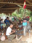 Caprichosamente la moto se ahoga cuando le viene en gana, se engrasa la bujía, cosa fácil para un aprendiz de la llave de tubo. Eso sí, no esperes que lo haga en un garito con sombrilla donde los lugareños hablen tu idioma o algo reconocible. No se por que extraña razón todos se empeñan en hablar sin parar, aunque no nos entendamos, en darte instrucciones o indicaciones, y paremos donde paremos solemos causar expectación. Alguno no confía mucho en mis habilidades como mecánico, pero cuando le meto el patadón a la Minsk y arranca a la primera siempre me gano una ovación. Ana mientras improvisa unos cursos espontáneos de vietnamita-español que van dando sus frutos y a los que yo me apunto. Rápidamente, con la ayuda de la mímica, podemos tener una conversación fluida en idiomas completamente distintos, que destreza la nuestra!