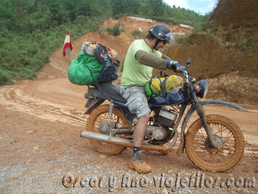 Y efectivamente, esto no era más que el comienzo, 4 meses por los rincones mas inaccesibles (para el turisteo) de Vietnam, Laos y Tailandia. Huracanes, averías y muchos, muchos kilómetros y pinchazos. Carreteras cortadas, impracticables para coches, donde nosotros éramos los únicos que las transitábamos y portábamos información fresca de su estado. Escaseo de gasolina, fronteras y policías déspotas. Semana tras semana sin ver un “restaurante” con una carta del menú en ingles, semanas sin ver un turista con el que intercambiar una impresión,… en fin, miles de kilómetros maravillosos llenos de aventuras y vivencias donde hubo de todo, siempre bueno (porque el mundo es bueno), y que gracias a la loca idea feliz de adquirir esa vieja Minsk fue posible llevar a cabo.