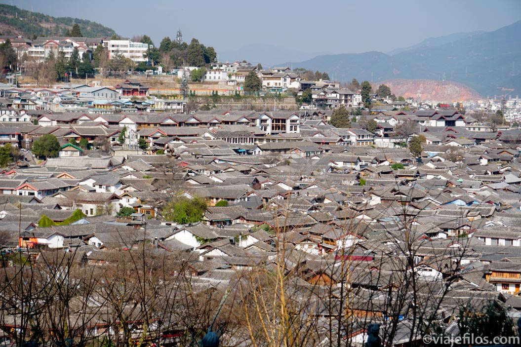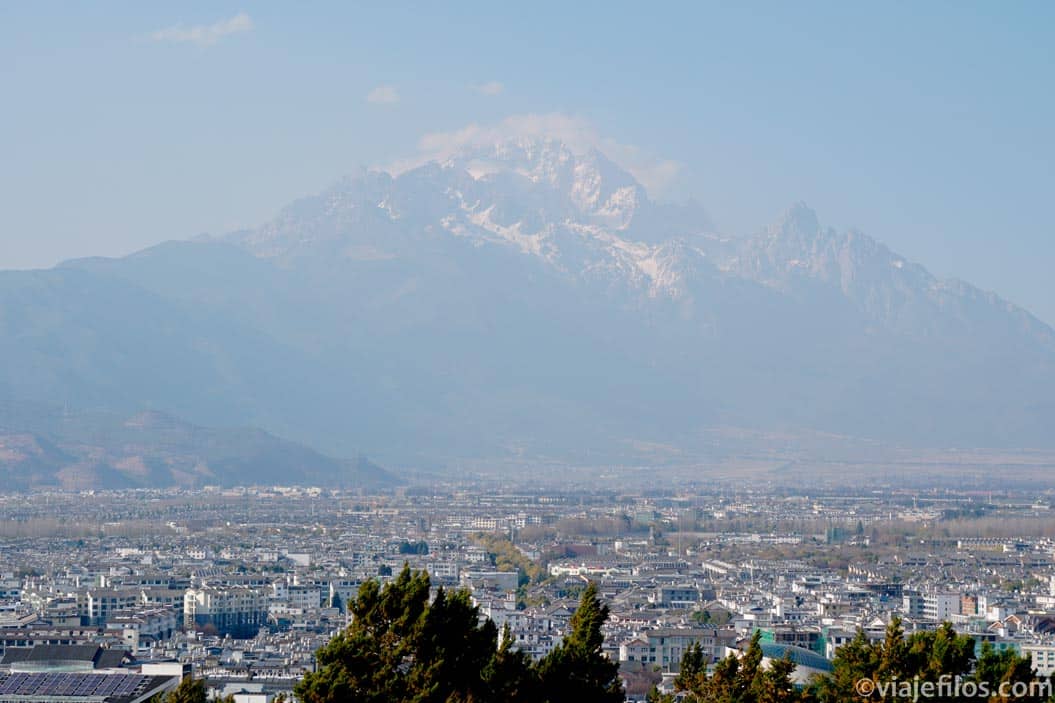 Merece la pena subir al atardecer, eso si para llegar hay que esforzarse, recordemos que estamos a más de 2000 msm. Entrar cuesta 35 yuanes (4.5 €). Abren de 9 a 23 horas. Subimos hasta el Wan Gu (Claridad eterna), un edificio en lo alto de la cima con vistas privilegiadas. Con sus 33 metros sobre la colina permite avistar hacia el norte la majestuosa Montaña Nevada del Dragón de Jade, una de las montañas más emblemáticas de Yunnan. Eso sí, las escaleras para llegar a lo alto del mirador si parecen eternas.