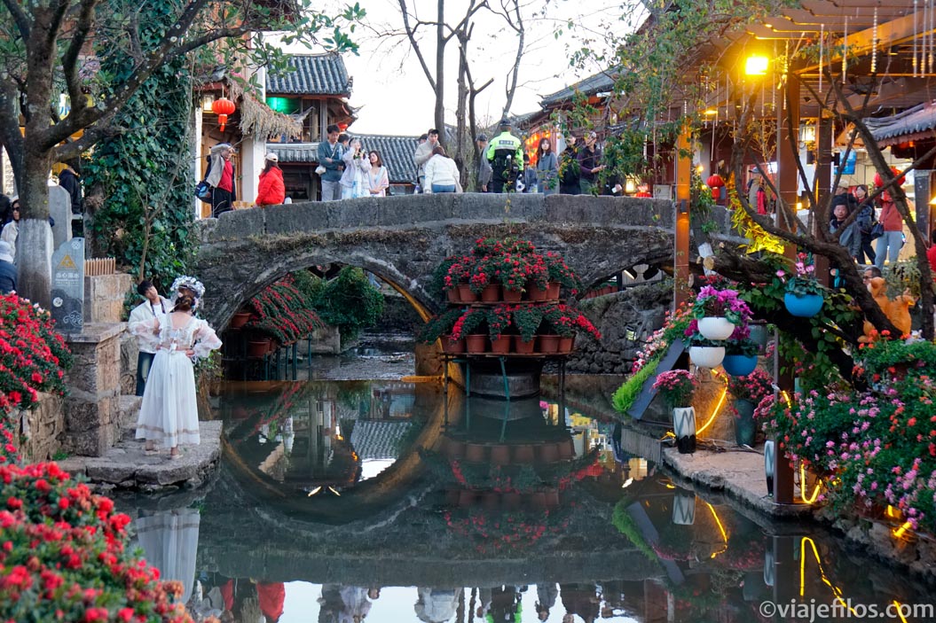 Lijiang, la ciudad de los puentes, una antigua población atravesada por canales con más de 350 puentes. Eso leíamos cuando preparamos esta parte del viaje y antes de llegar ya estábamos arrepentidos de no haber podido sacar más tiempo para aquel viaje a Yunnan. Hacía años que habíamos cruzado la carretera de la Amistad en Tíbet y nos enamoró. De alguna manera esperábamos algo parecido en esta provincia del sur de los Himalayas. Y cuanto más leíamos, más convencidos estábamos: minorías étnicas ancestrales, grandes montañas nevadas, pequeñas poblaciones ancladas en el pasado. ¿Sabíais que Yunnan significa “al sur de las nubes?…