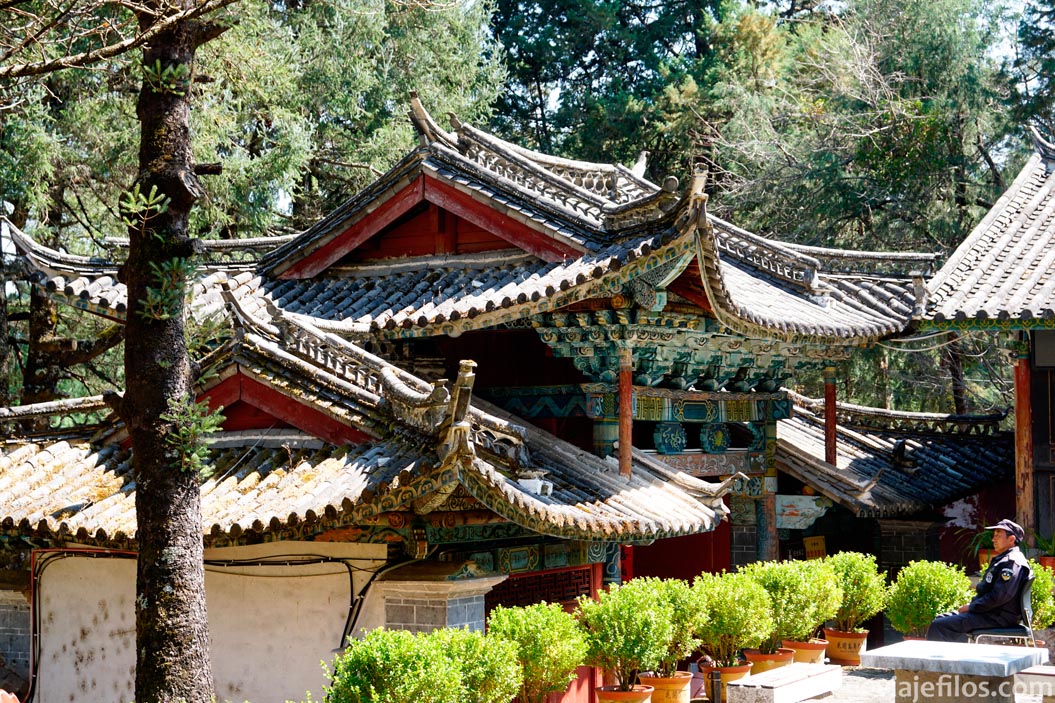 Antes de seguir nos acercamos a ver los Murales de Baisha: pinturas del siglo XV con influencias budistas, taoístas y tibetanas. Para ello hay que pagar entrada, 20 yuanes. Abren entre las 8:30 y las 17:30. El complejo incluye varios edificios de la dinastía Ming y Qing, en total 45 murales. Resultan impresionantes. No está permitido echar fotos. La verdad es que hacemos la visita prácticamente solos, está parte de su cultura no interesa tanto al turismo nacional…